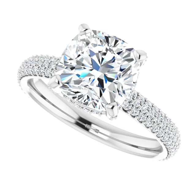 2.25 Tcw Cushion Hidden Halo Sidestone Engagement Ring quantity