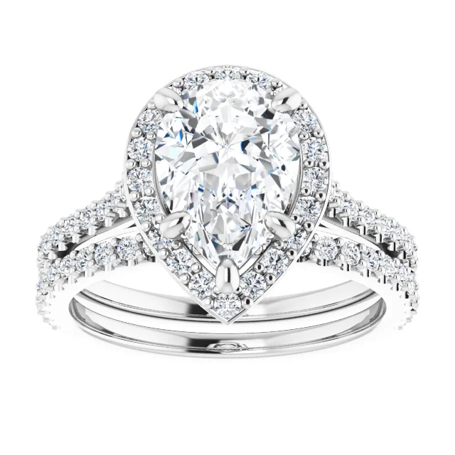 / 1.70 Tcw Pear Four Prong Suspended Halo Engagement Ring